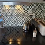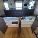 Επίσης, θα βρείτε φούρνο μικροκυμάτων, ηλεκτρικό βραστήρα και ψυγείο.
